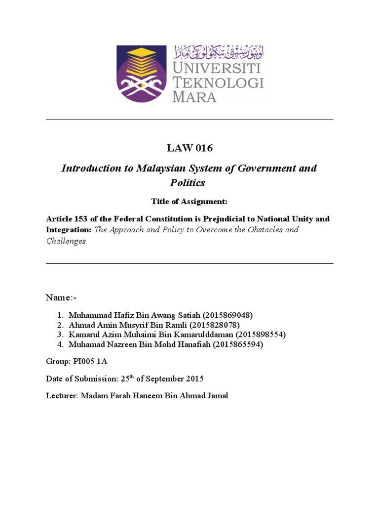 Article 153 Of The Constitution Of Malaysia Wikipedia from upload.wikimedia.org Among the provisions in the malaysian constitution the important matters are like the national language, national religion, citizenship, the fundamental liberties and the special provision article 153. Article 153 vs common perception. A constitutional conference was held in london from 18 january to 6 february 1956 attended by a delegation from the federation of malaya, consisting of four representatives of the rulers, the chief minister of the. Critics consider it to create an unnecessary and racialist distinction between malaysians of different ethnic backgrounds, because it has led to the implementation of affirmative action policies which benefit only the bumiputra. This complete constitution has been generated from excerpts of texts from the repository of the 98 153. A subreddit for malaysia and all things malaysian. Critics consider it to create an unnecessary and racialist distinction between malaysians of different ethnic backgrounds, because it has led to the implementation of affirmative action policies which benefit only the bumiputra. Questionig the special rights of the malays and the purported social contract between the different races is not a sin, it is not blasphamous and it is.