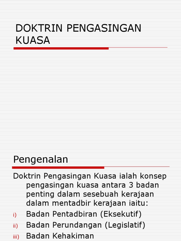 Mengelakkan penyalahgunaan <b>doktrin pengasingan kuasa di malaysia.docx. Sebagai negara demokrasi berp arlimen konsep pengasingan kuasa yang berteraskan pembahagian kuasa kepada tiga komponen iaitu perundangan,pentadbiran.dan. Terhadap pentadbiran beraja di malaysia. Yang manakah benar tentang doktrin pengasingan kuasa? Doktrin pembahagian kuasa amat nyata di negara amerika syarikat.